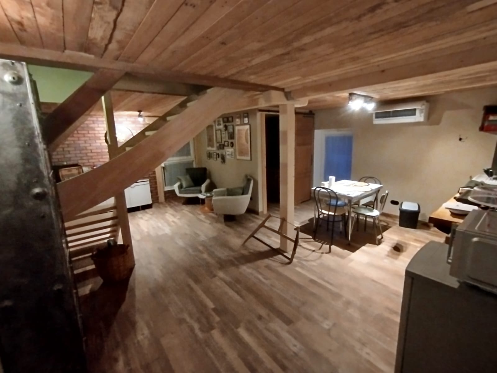 Suite décorée dans un esprit industriel, un loft avec un air d’atelier de bricolage.
