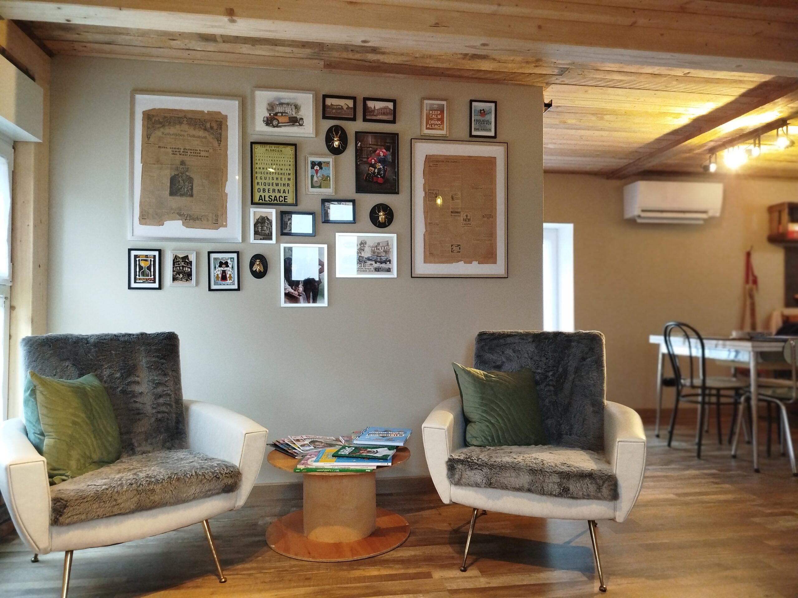 Le Fenil du Grand Dormeur, installé dans une grange rénovée, avec son entrée indépendante, accessible par un escalier en bois depuis la cour de la maison familliale. Nous vous accueillons dans des suites au charme vintage. Situées idéalement à Bischoffsheim, au cœur de l’Alsace, sur la route des vins d’Alsace, à seulement 20 minutes de Strasbourg, 5 minutes d’Obernai et 10 minutes de Molsheim. Que vous soyez en couple, en famille, en déplacement professionnel ou de passage pour un événement sportif, vous trouverez ici un hébergement spacieux, confortable et atypique.