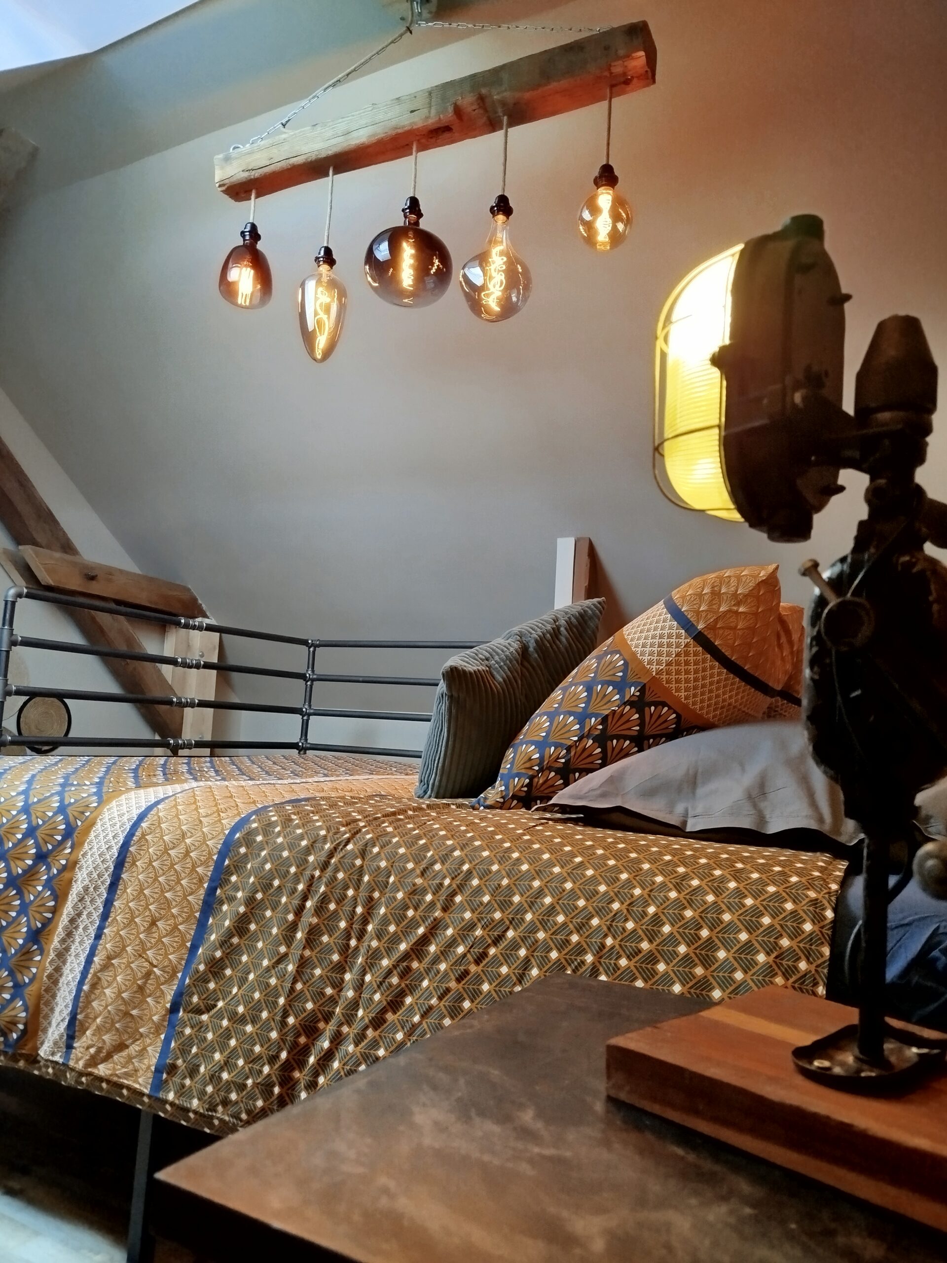Nous nous sommes installés cette année là à Bischoffsheim, avec l’intention de réhabiliter la grange. En 2023 nous décidons d’y créer les chambres d’hôtes. Et pour respecter le charme et l’authenticité de cette grange, quoi de mieux qu’une décoration authentique ?