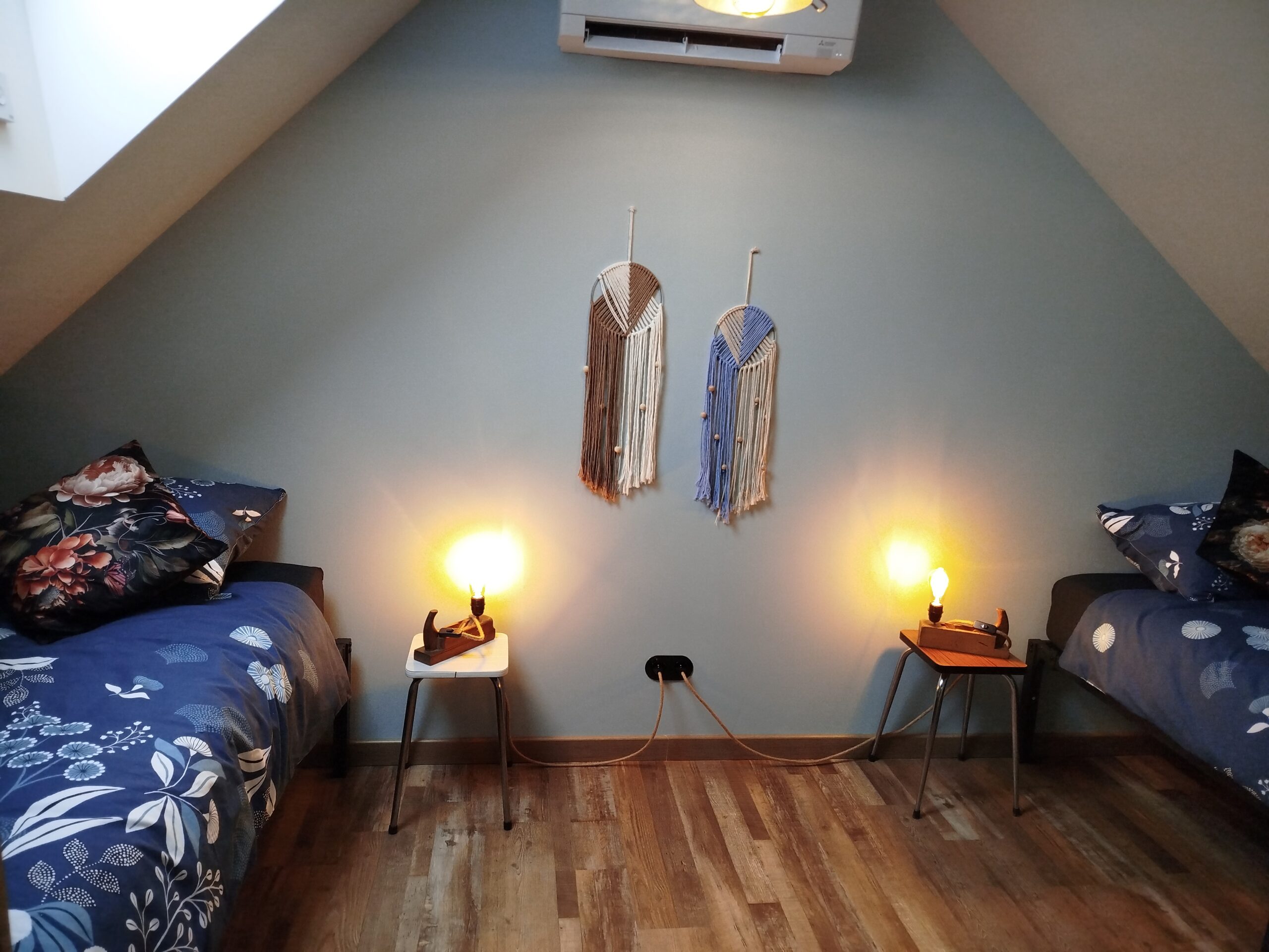 Le fenil du Grand Dormeur, composé de 2 suites en chambres d’hôtes, situé au 1 er étage de notre grange, avec une entrée indépendante, accessible par un escalier en bois depuis la cour. D’un côté, une suite qui vous emmène dans un univers industriel, un petit loft qui se prend pour un atelier de bricolage avec une touche de déco seventies ! De l’autre côté, une décoration vintage chaleureuse, qui offre un moment de cocooning et de douceur.